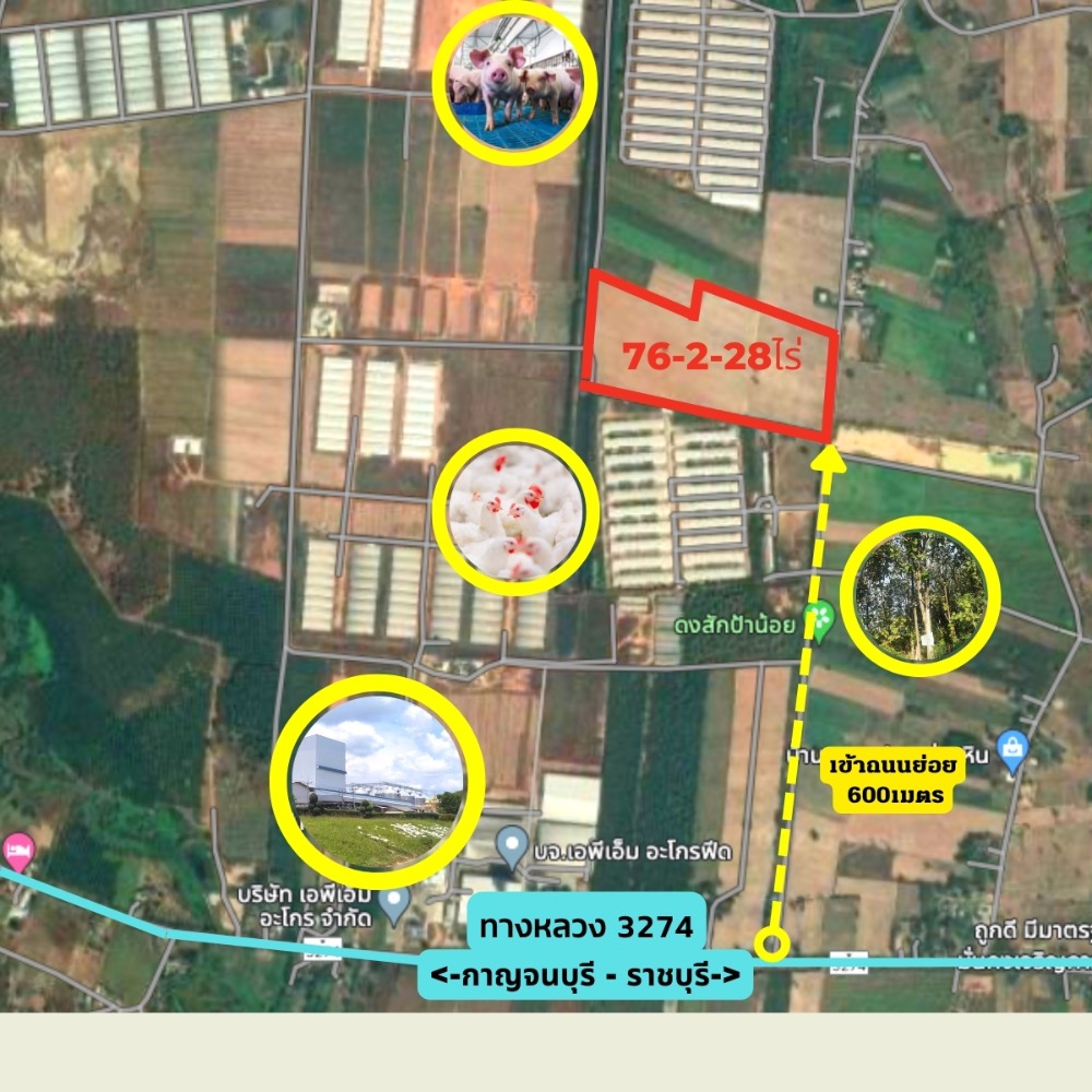 - ห่างจากถนนหลวง 3274 (ราชบุรี-กาญจนบุรี) เพียง 600 เมตร